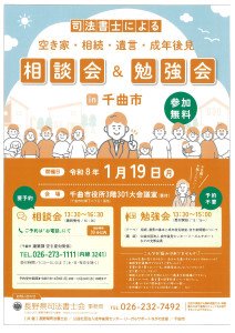 令和8年1月19日に千曲市で「空き家・相続・遺言・成年後見 無料相談会&勉強会」を開催します