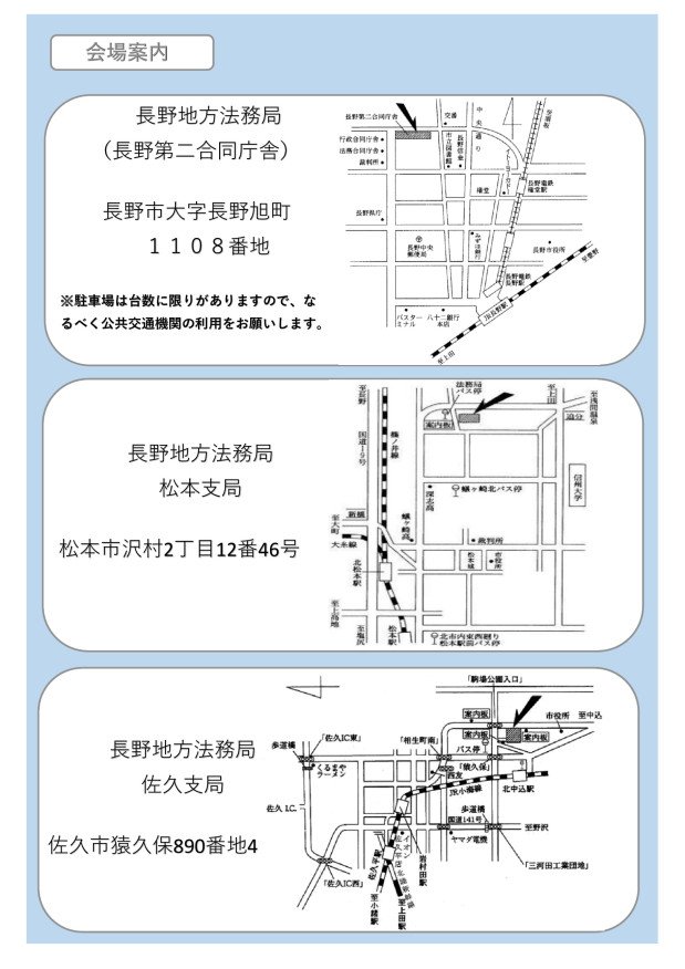 場所 長野地方法務局佐久支局1階会議室(佐久市猿久保890番地4)