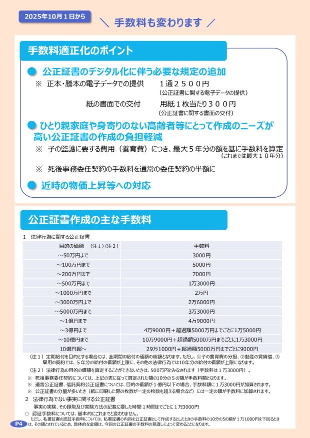 公正証書作成手続のデジタル化に関するリーフレット(日本公証人連合会作成)を掲示しました。