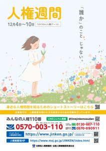 法務省及び全国人権擁護委員連合会は、令和7年12月4日から12月10日までの1週間を「第77回人権週間」と定め、ポスターを作成掲示しましたので法務省の下記ページと合わせてご覧ください。